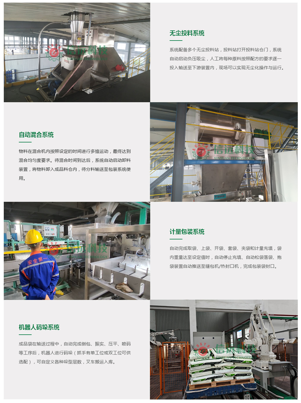 集混合、包裝、機器人碼垛于一體的自動化生產(chǎn)線設(shè)備